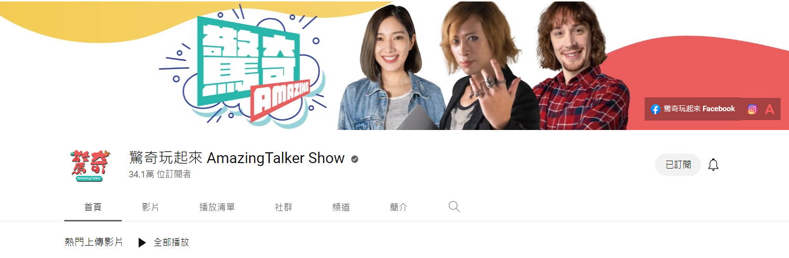 頻道 : 驚奇玩起來 AmazingTalker Show 內容 : 以教學英文為主。邀請訪問嘉賓,輕鬆聊天的訪談中學習英文單字片語,以及兩位主持人ECo和Sandra的訪談風格很搞笑、中二的呈現,讓我樂此不疲的想繼續看。 |
