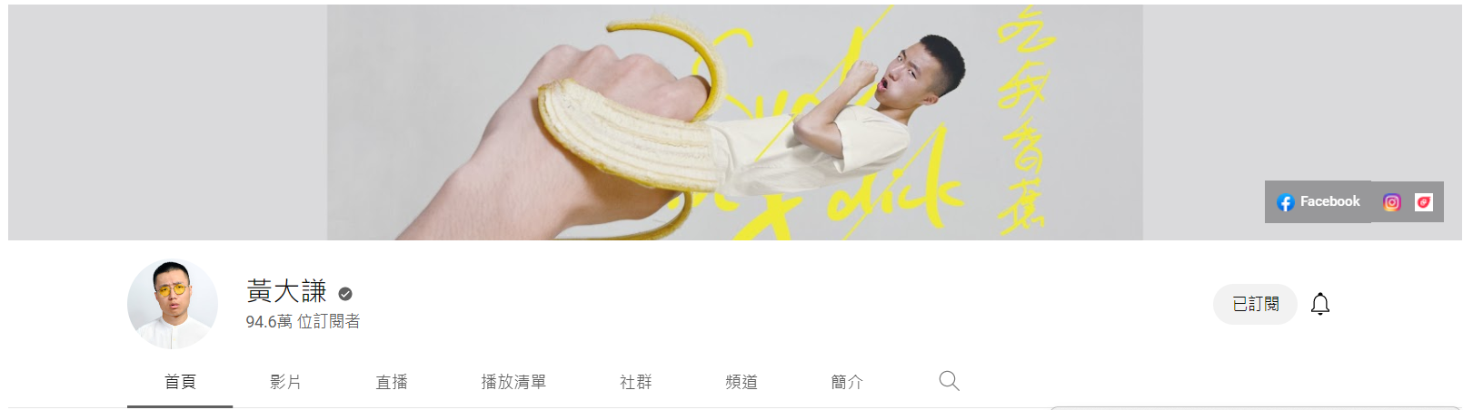 頻道 : 黃大謙 內容 : 有著強烈不同的風格的youtuber,是以厭世的表情和平淡風清的態度以及有獨特清晰的想法著名的youtuber,也因如此讓我想了解更多他拍的影片,也是非常搞笑,但是是非常冷的搞笑的幽默,讓我一直想點進去看。 |